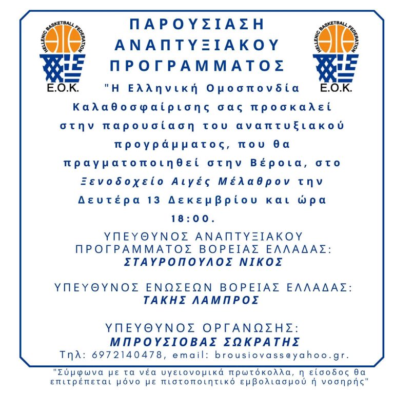 Με πλήρη συναίσθηση της υγειονομικής κατάστασης, όπως αυτή διαμορφώνεται το τελευταίο χρονικό διάστημα και απολύτως σεβόμενοι τις αποφάσεις της Ε.ΟΚ περί προσωρινής διακοπής των Εθνικών Πρωταθλημάτων, αποφασίζουμε την αναστολή της αγωνιστικής δραστηριότητας για όλα τα Πρωταθλήματα και Τουρνουά της Ένωσης…